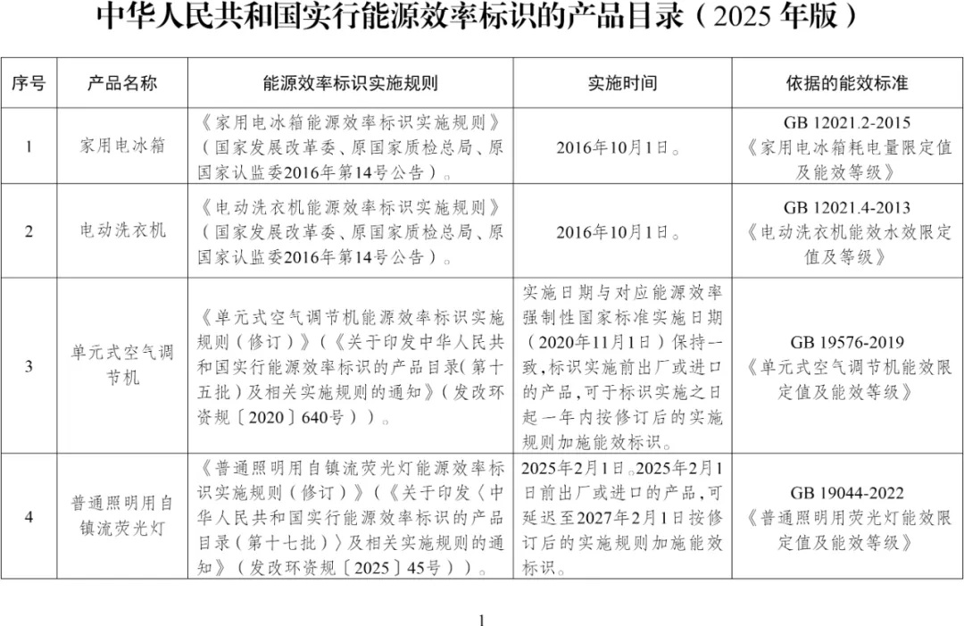 根据《能源效率标识管理办法》(国家发展改革委、原国家质检总局2016年第35号令)规定,国家发展改革委、市场监管总局组织制修订了相关产品能源效率标识实施规则,并对实行能源效率标识的产品目录进行了梳理,形成了《中华人民共和国实行能源效率标识的产品目录(2025年版)》及相关实施规则,现印发给你们,请认真贯彻执行。